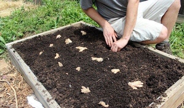 Дальнейшее размножение имбиря возможно из собственного сырья. Для этого от корня следует отделить несколько долей в самых узких местах. Плоскость среза присыпать древесной золой и подсушить. Это не позволит ему загноиться, а благодаря формированию пробки посадочный материал прекрасно сохранится до следующей высадки в грунт.