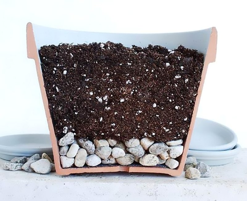 - Подготовка горшков. На дно укладывается дренаж, насыпается грунт.